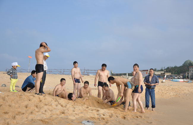 虽然到了深秋,海风习习,海水也有一丝丝凉意,参与活动的安博网页版总部50多名员工纷纷下海畅游,好不惬意。不少参与活动的员工家属也按捺不住活动开来。大家边游泳,边踏浪,也有的在沙滩上捡贝壳,孩子们拿着铲子挖沙,一个个玩得不亦乐乎。