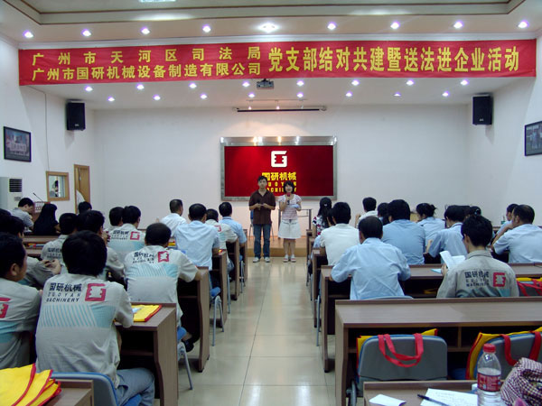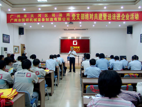 9月7日下午,广州市天河区司法局党支部和文教工作队一行18人在局长罗育辉和副局长曾晓云的带领下,来到广州市安博网页版设备制造有限公司举行党支部结对共建暨送法进企业活动。