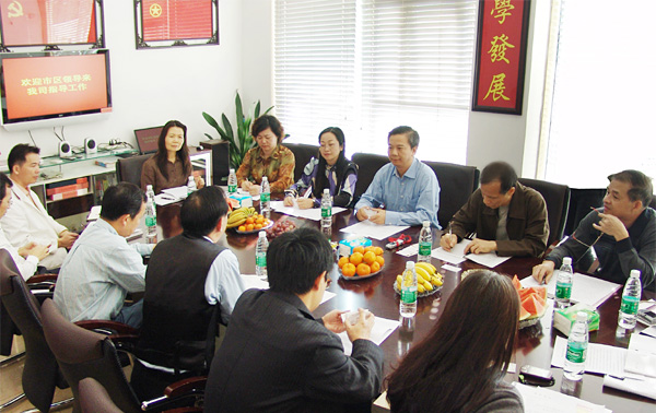 广州市非公经济组织创先争优活动指导小组在安博网页版公司调研(中为广州市工商局副局长周邦华)